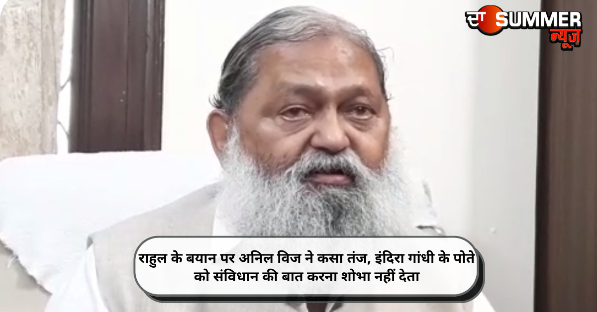 अंबाला (अंकुर कपूर): हरियाणा के गृह मंत्री अनिल विज ने कांग्रेस के पूर्व राष्ट्रीय अध्यक्ष राहुल गांधी के बयान पर तीखी प्रतिक्रिया दी है। दरअसल राहुल गांधी ने बीजेपी और आरएसएस संविधान को खत्म करने पर बयान दिया था। जिसके चलते अनिल विज ने तंज कसते हुए कहा कि इंदिरा गांधी के पोते राहुल गांधी को संविधान के बारे में बोलते हुए शोभा नहीं देता। जिसने संविधान को रौंद कर देश में इमरजेंसी लगवाई, सारे मौलिक अधिकारों को खत्म कर उन पर कुठाराघात किया। सारे देश में लोगों को उठा-उठा कर जेल में डाल दिया। उन्हें यातनाएं दी गई ढाई-ढाई साल तक लोगों को जेल में रखा गया। अब उसी इंदिरा गांधी का पोता संविधान और प्रजातंत्र की बात करें तो शोभा नहीं देता।