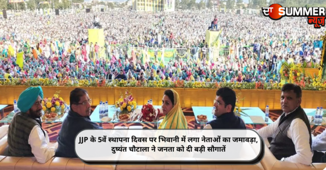 यह बात उन्होंने आज भिवानी में जननायक जनता पार्टी के 5वें स्थापना दिवस पर आयोजित जनसम्मान दिवस रैली के मौके पर जनता को संबोधित करते हुए कही। जननायक जनता पार्टी के स्थापना दिवस पर आयोजित इस रैली में प्रदेश भर से भारी संख्या में जजपा कार्यकर्ता पहुंचे हुए थे। इस रैली में 1200 वॉलियंटीयर कार्यक्रम की व्यवस्था को संभाले हुए थे। वही रैली में हरियाणवी व पंजाबी कलाकारों ने आए हुए लोगों को मनोरंजन भी किया। रैली के दौरान बड़ी संख्या में महिलाएं हरी-पीली चुनरी ओढ़कर हरियाणवी लोकगीत गाते हुए पहुंची।