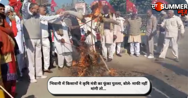 भिवानी (अंकुर कपूर): भिवानी में बुधवार को संयुक्त किसान मोर्चा की तरफ से स्थानीय भगत सिंह चौक पर मोर्चा की तरफ से प्रदेश सरकार के कृषि मंत्री जेपी दलाल का विरोध स्वरूप प्रतीकात्मक पुतला फूंका गया। उनका कहना था कि किसानों का इस तरह की टिप्पणी करके अपमान करना मंत्री को शोभा नहीं देता।