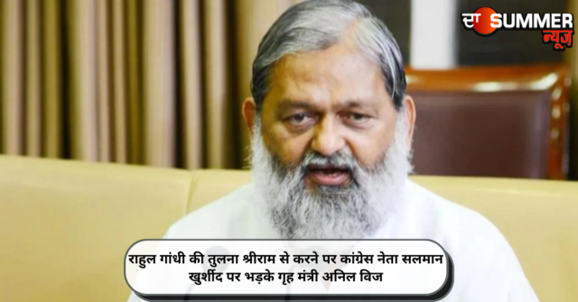 अंबाला (एकता): पूर्व विदेश मंत्री एवं कांग्रेस नेता सलमान खुर्शीद के विवादित बयान पर राजनीति होने लगी है। बता दें कि उन्होंने राहुल गांधी की तुलना श्री राम से कर दी। खुर्शीद के इस बयान से हरियाणा के गृह मंत्री अनिल विज भड़क गए।