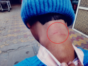 मासूम की गर्दन और पीठ पर पिटाई के निशान मौजूद हैं। परिजनों द्वारा बच्चे का मेडिकल करवाया गया है। गौरतलब है कि यमुनानगर में एक स्कूल के बाहर दसवीं कक्षा का छात्र पर युवकों ने लोहे की रॉड, डंडों से हमला किया था।