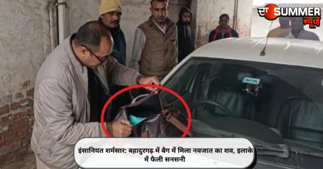 बहादुरगढ़ (एकता): हरियाणा के बहादुरगढ़ में इंसानियत को शर्मसार कर देने वाला मामला सामने आया है। जहां एक प्लास्टिक बैग में नवजात का शव मिलने से सनसनी फैल गई। मीडिया सूत्रों के अनुसार मेहंदीपुर डाबोदा गांव में एक व्यक्ति की गाड़ी के बोनट पर एक बैग रखा मिला। पुलिस ने मौके पर पहुंचकर बैग को खोलकर देखा तो उसमें नवजात का शव पड़ा था। शव को कब्जे में लेकर जांच शुरू कर दी है।
