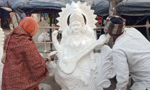करनाल में बसंत पंचमी के आते ही मां सरस्वती प्रतिमा को अंतिम रूप देने में जुटे राजस्थानी