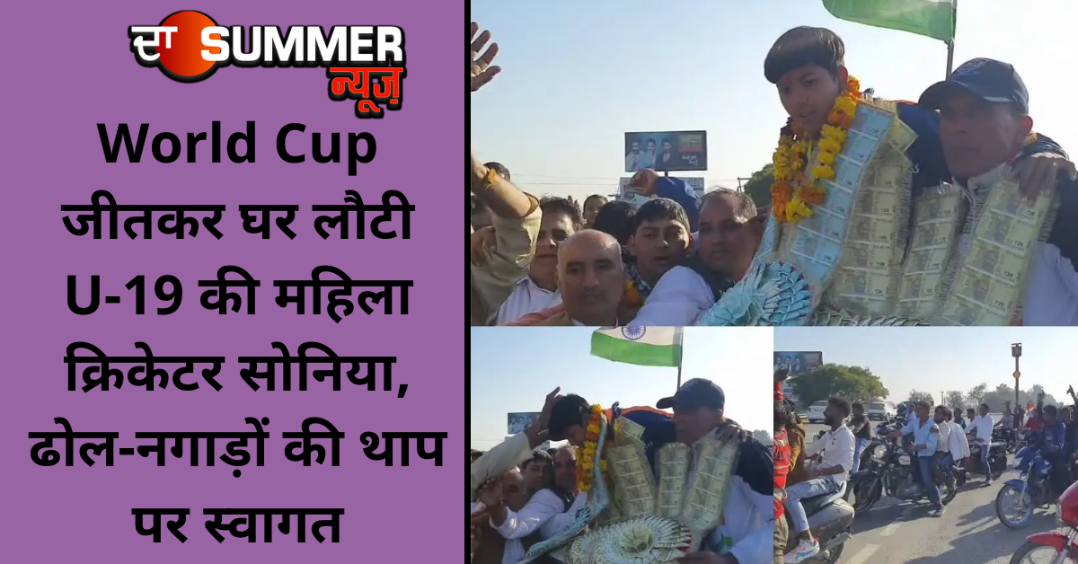 रोहतक (अंकुर कपूर): भारतीय अंडर-19 महिला क्रिकेट टीम का अंडर-19 क्रिकेट वर्ल्ड कप जीतकर इतिहास रचने वाली भारतीय टीम की सदस्य सोनिया अपने पैतृक गांव जिला रोहतक के ब्रह्मणवास पहुंची। जहां उनके परिवार के साथ ग्रामीणों ने उसका दिल खोलकर स्वागत किया। मां ने तिलक लगाया तो ग्रामीण ने फूल-माला और नोटों की बौछार कर दी।
