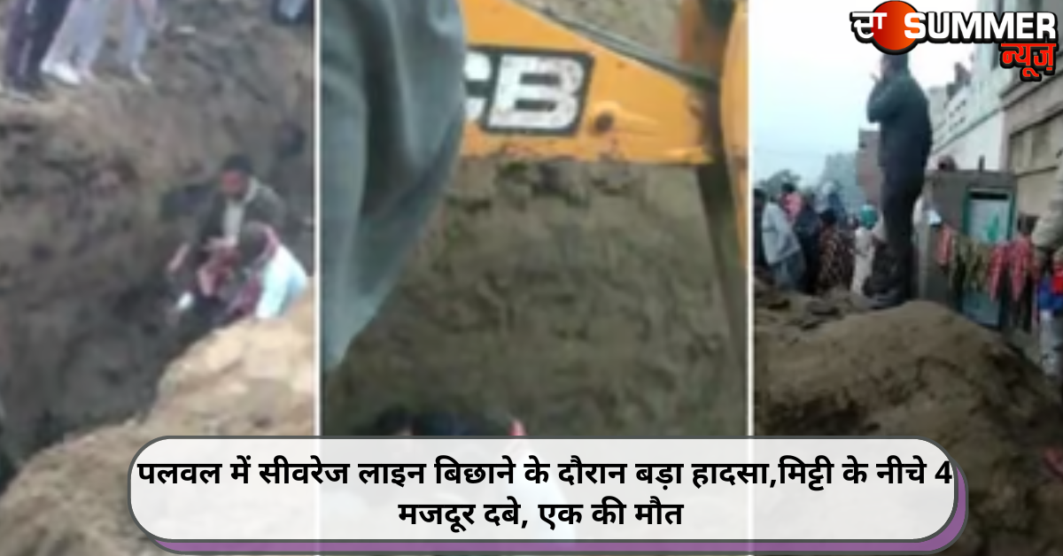 पलवल (अंकुर कपूर): पलवल में 20 फुट गहरी सीवरेज लाइन बिछाने के दौरान बड़ा हादसा हो गया। जहां मिट्टी के नीचे 4 मजदूरों के दबने से एक की मौके पर ही मौत हो गई। बता दें कि पलवल अलीगढ़ रोड पर नगर परिषद क्षेत्र में पिछले कई महीने से सीवेज की गहरी पाइप लाइन दबाने का काम चल रहा था। सोमवार को जीसीबी और मजदूर साथ-साथ खुदाई और पाइप डालने का काम कर रहे थे।