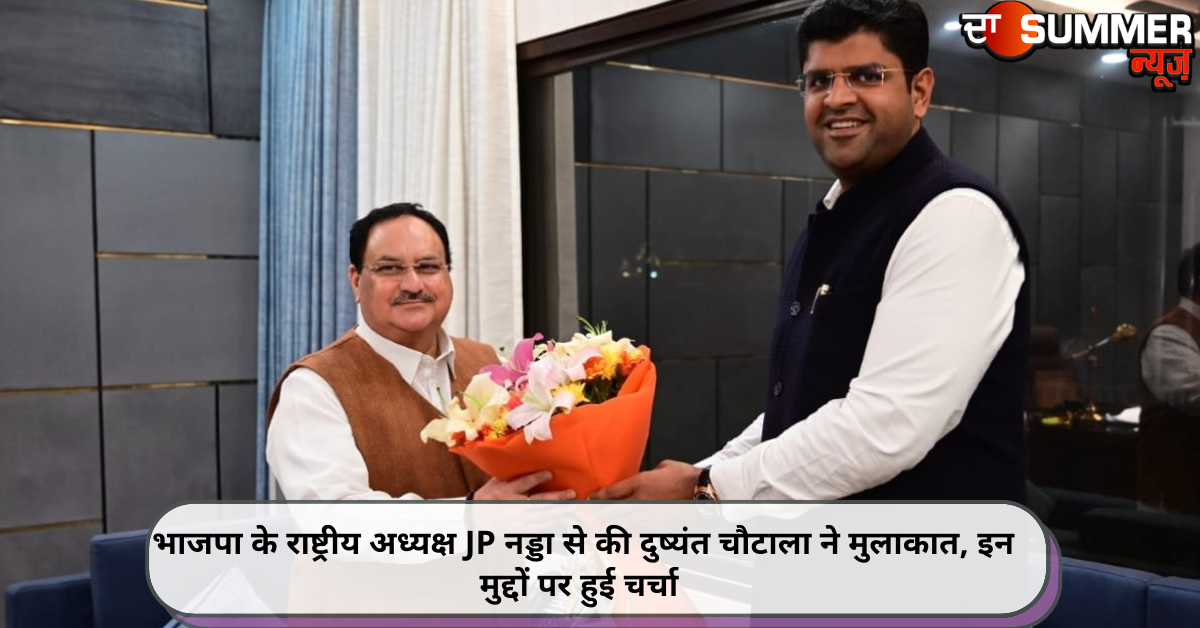 हरियाणा (एकता): हरियाणा के उप-मुख्यमंत्री दुष्यंत चौटाला ने भाजपा के राष्ट्रीय अध्यक्ष जेपी नड्डा से मुलाकात की। मीडिया सूत्रों के अनुसार जेपी नड्डा के आवास पर दुष्यंत चौटाला ने प्रदेश की राजनीति व गठबंधन के विभिन्न विषयों पर चर्चा की। दुष्यंत चौटाला ने शनिवार को अपने ट्विटर पर भी यह तस्वीरें पोस्ट की।