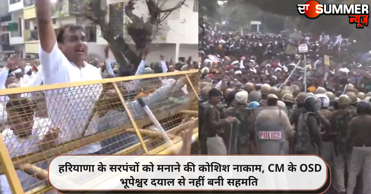 चंडीगढ़ (एकता): हरियाणा के मुख्यमंत्री मनोहर लाल खट्टर के ओएसडी भूपेश्वर दयाल हाउसिंग बोर्ड चौक धरना स्थल पर पहुंचे। जहां उनकी सरपंचों को मनाने की कोशिश नाकाम रही। बता दें कि भूपेश्वर दयाल हरियाणा सरपंच एसोसिएशन के प्रतिनिधिमंडल से सरपंचों की मांगों को लेकर बात की। मीडिया सूत्रों के अनुसार हरियाणा सरपंच एसोसिएशन के प्रतिनिधिमंडल की बैठक हुई लेकिन उस पर सहमति नहीं बन पाई। ओएसडी भूपेश्वर दयाल ने कहा कि उनकी मांगों का एक पत्र मुख्यमंत्री तक पहुंचा देंगे। प्रतिनिधिमंडल ने कहा कि जब तक मांग पूरी नहीं होती वह घर नहीं जाएंगे। वह ऐसे ही धरना प्रदर्शन करते रहेंगे।