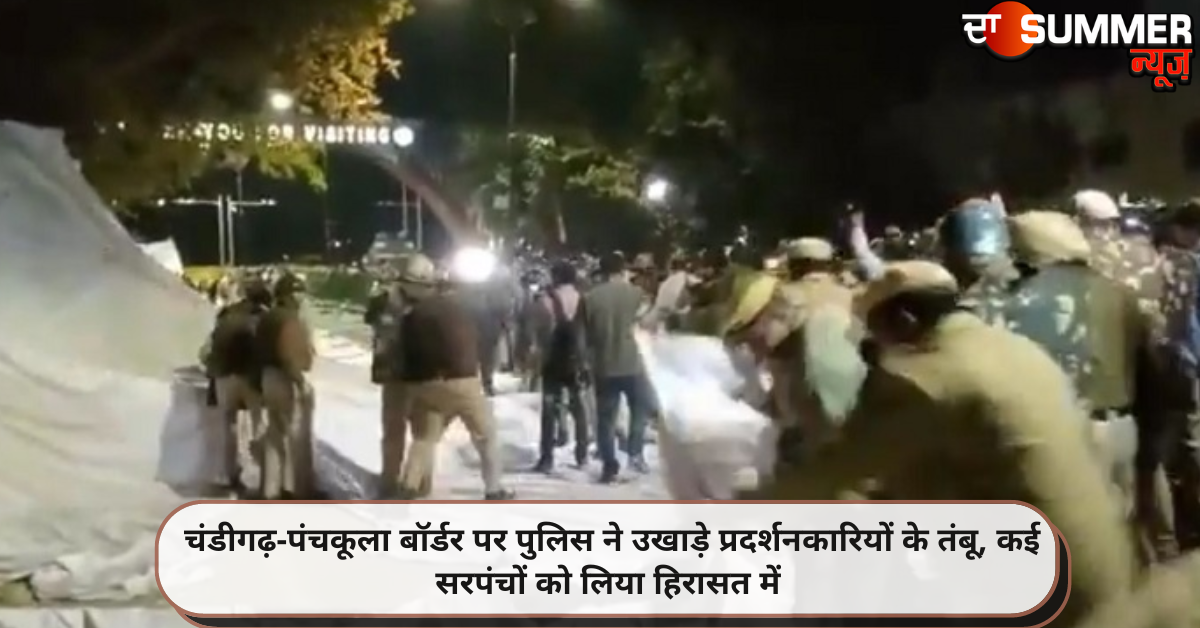 चंडीगढ़ (एकता): चंडीगढ़-पंचकूला बॉर्डर पर उस समय माहौल गर्माया जब पुलिस ने प्रदर्शनकारियों के तंबू उखाड़ फेंके। बता दें कि भारी पुलिस की मौजूदगी में सभी सरपंच प्रदर्शनकारियों को हिरासत में भी लिया गया। पुलिस ने धरनास्थल खाली करवा दिया।