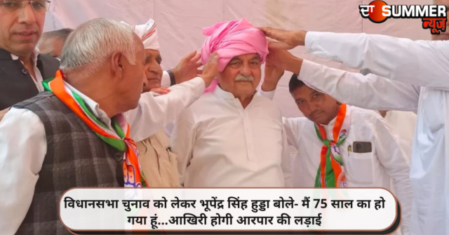 रोहतक (अंकुर कपूर): हरियाणा के पूर्व मुख्यमंत्री एवं कांग्रेस प्रतिपक्ष नेता भूपेंद्र सिंह हुड्डा ने अपने विधानसभा क्षेत्र गढ़ी सांपला किलोई में हाथ से हाथ जोड़ो कार्यक्रम के दौरान बड़ा ऐलान किया। मीडिया सूत्रों के अनुसार उन्होंने कहा कि मैं 75 साल का हो गया हूं, यह मेरे संघर्ष की आखरी आर पार की लड़ाई है। हुड्डा अपने विधानसभा क्षेत्र के गांव घिलोड कला में कार्यक्रम के बाद पत्रकारों से बात कर रहे थे। यही नहीं उन्होंने मौजूदा प्रदेश सरकार पर कटाक्ष करते हुए कहा कि अब भाजपा के पिटने समय आ गया है।