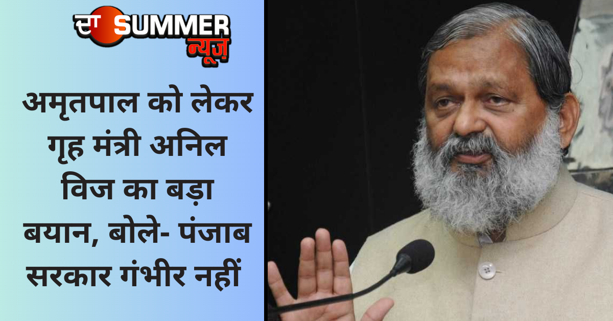अंबाला (एकता): ‘वारिस पंजाब दे’ प्रमुख अमृतपाल सिंह लेकर हरियाणा के गृह मंत्री अनिल विज का बड़ा बयान सामने आया है। मीडिया सूत्रों के अनुसार अनिल विज ने कहा कि अमृतपाल को पकड़ने में पंजाब सरकार गंभीर नहीं है। बता दें कि हरियाणा पुलिस में पंजाब पुलिस को सूचना दे दी थी लेकिन हमारी सूचना के बावजूद पंजाब पुलिस डेढ़ दिन बाद पंजाब से शाहाबाद पहुंची। अनिल विज ने कहा कि ये पंजाब सरकार का क्या राजनीतिक ड्रामा है मुझे नहीं पता। गौरतलब है कि पंजाब पुलिस की कड़ी सुरक्षा के बीच अमृतपाल सिंह 19 मार्च की रात यूट्यूबर पपलप्रीत के साथ रात 9 बजकर 46 मिनट पर कुरुक्षेत्र जिले के शाहाबाद के सिद्धार्थ कालोनी में सफेद रंग की पंजाब नंबर की स्कूटी पर पहुंचा।