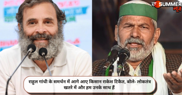 कैथल (अंकुर कपूर): राहुल गांधी के समर्थन में अब भारतीय किसान यूनियन के अध्यक्ष राकेश टिकैत आगे आए हैं। मीडिया से बात करते हुए राकेश टिकैत ने कहा कि देश में लोकतंत्र खतरे में है सभी पार्टियों को संयुक्त किसान मोर्चे की तरह राजनैतिक दल बनाना चाहिए। ये बात उन्होंने तब कही जब राहुल गांधी की लोकसभा सदस्यता रद्द करने बारे सवाल किया गया।