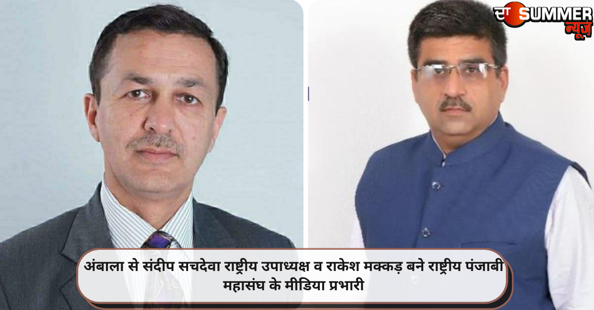 अंबाला: अंबाला से संदीप सचदेवा राष्ट्रीय उपाध्यक्ष व राकेश मक्कड़ राष्ट्रीय पंजाबी महासंघ के मीडिया प्रभारी बने हैं। बता दें कि देश भर में पंजाबी समुदाय के हितों की रक्षा व उत्थान में कार्यरत राष्ट्रीय पंजाबी महासंघ की नई इकाई का गठन किया गया है, जिसमें सूरत से नरेश सेठ अध्यक्ष ने महासंघ की इकाई का विस्तार किया गया है। पंजाबी बिरादरी विकास सभा हरियाणा रजि के अध्यक्ष एडवोकेट संदीप सचदेवा को राष्ट्रीय उपाध्यक्ष एवं बिरादरी के प्रैस सचिव एवं प्रवक्ता की जिम्मेदारी संभाल रहे इंजीनियर राकेश मक्कड़ को राष्ट्रीय मीडिया प्रभारी एवं पीआरओ के पद पर सुशोभित किया है।