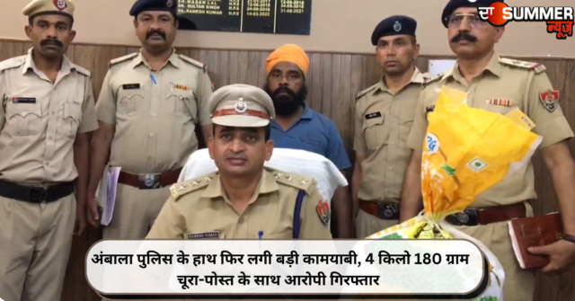 अंबाला (अंकुर कपूर): अंबाला में नशे को खत्म करने के लिए पुलिस द्वारा समय-समय पर विशेष अभियान चलाए जाते हैं। इसी के चलते अंबाला पुलिस के हाथ एक और कामयाबी हाथ लगी है, जिसमें पुलिस ने एक व्यक्ति को 4 किलो 180 ग्राम चूरा पोस्त के साथ गिरफ्तार किया है।