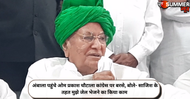 अंबाला (अंकुर कपूर): इनेलो सुप्रीमो व पूर्व मुख्यमंत्री ओम प्रकाश चौटाला अंबाला में इनेलो कार्यकर्ताओं से मिलने पहुंचे। अंबाला पहुंचने पर इनेलो कार्यकर्ताओं द्वारा उनका फूल-मालाएं पहनाकर जोरदार स्वागत किया गया। इस मौके पर भारी संख्या में इनेलो नेता व कार्यकर्ता मौजूद रहे। मंच से चौटाला में कांग्रेस पर जमकर प्रहार करते हुए कहा कि कांग्रेस सरकार ने साजिश के तहत मुझे जेल भेजने का काम किया।