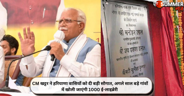 अंबाला (अंकुर कपूर): मुख्यमंत्री मनोहर लाल खट्टर ने हरियाणा को बड़ी सौगात दी है। सिरसा के अबूबशहर गांव में जन संवाद कार्यक्रम की शुरुआत अबूबशहर की बेटियों प्रतिज्ञा और प्रियंका को उनके जन्मदिन पर आशीर्वाद व शगुन देकर की। जन संवाद कार्यक्रम के दौरान मुख्यमंत्री ने बड़ी घोषणा करते हुए कहा कि सरकार ने निर्णय लिया है कि अगले वर्ष में प्रदेश के बड़े गांवों में 1000 ई-लाइब्रेरी खोली जाएगी। यहां तक कि 5 से 6 हजार की आबादी वाले गांवों में ई-लाइब्रेरी बनाई जाएगी।