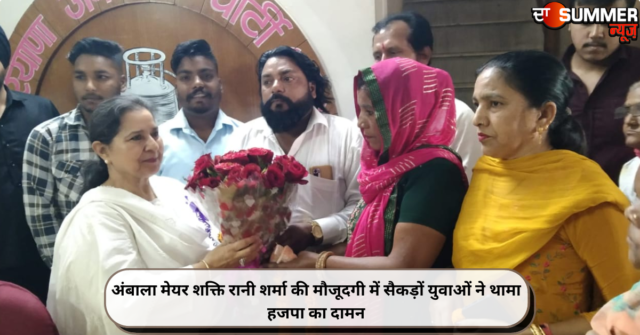 अंबाला (अंकुर कपूर): अंबाला में रविवार को मेयर व हजपा की वरिष्ठ नेत्री शक्तिरानी शर्मा की मौजूदगी में सैकड़ों युवाओं ने हजपा का दामन थामा। मीडिया सूत्रों के अनुसार मेयर शक्तिरानी ने सभी युवाओं का पार्टी में पटका पहनाकर स्वागत किया। इस अवसर पर विनीत भाई व उनके बेटे रूद्र भाई ने कहा कि अंबाला के युवा पढ़े-लिखे होने के बावजूद रोजगार के अभाव में इधर-उधर भटक रहे हैं।