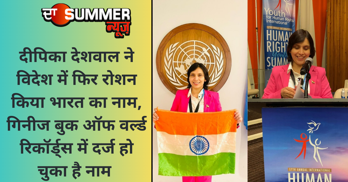 बताया जा रहा है कि संयुक्त राष्ट्र अमेरिका में लगातार तीन बार मानव अधिकार को लेकर दीपिका देशवाल में अपना भाषण दिया। दीपिका का नाम गिनीज बुक में भी एक रिकॉर्ड के रूप में दर्ज हो गया है। वह मूल रूप से हरियाणा की रहने वाली हैं। वह मानव अधिकार व वुमन राइटस के लिए लगातार लोगों को प्रेरित और जागरूक करते आई है।