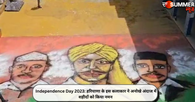 झज्जर (एकता): हरियाणा के युवाओं में वैसे तो कला कूट-कूट कर भरी हुई है। उनमें हर चीज़ का अलग हुनर देखने को मिलता है। आज देशभर में 77वां स्वतंत्रता दिवस मनाया जा रहा है। मीडिया सूत्रों के अनुसार झज्जर के रंगोली कलाकार मुकेश शर्मा ने अनोखे अंदाज में शहीदों को नमन किया है। बता दें कि इस कलाकार ने बड़े ही सुंदर तरीके से भगत सिंह, सुखदेव और राजगुरु की बड़ी रंगोली बनाकर उनको याद किया। जानकारी के मुताबिक हर कोई अपने-अपने तरीके से यह जश्न मना रहा है। मुकेश शर्मा ने शहीदों को नमन करने के लिए एल.ए. स्कूल में 40×50 फुट की रंगोली बनाई। खास बात यह है कि उनकी रंगोली के मुख्यमंत्री मनोहर लाल भी मुरीद हो गए हैं। इसको बनाने में 8 किलो से ज्यादा रंग और कई घंटे लगे।