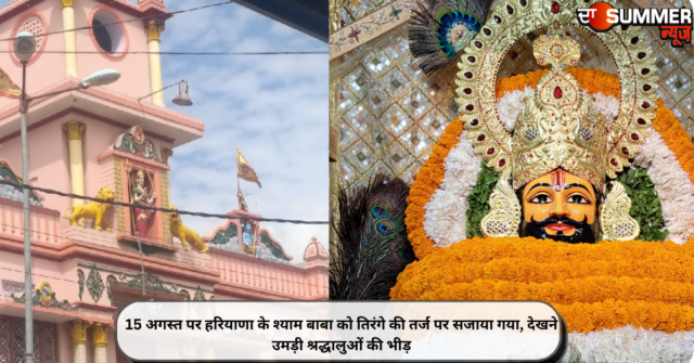 बता दें कि विश्वकर्मा चौक स्थित श्याम बाबा मंदिर में मूर्ति का श्रृंगार तिरंगे की तर्ज पर फूलों से किया गया। पूरे मंदिर में तिरंगे झंडे लगाए गए हैं। करीब 100 किलो वजन के फूलों का इस्तेमाल किया गया है। इसमें पीले फूलों में गेंदा के फूल, सफेद रंग का इस्तेमाल किया गया है। वहीं बीच में अशोक चक्र बनाने के लिए कोलकाता से घास मंगवाई गई।