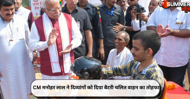 चंडीगढ़ (एकता): हरियाणा के मुख्यमंत्री मनोहर लाल ने अपने जनसंवाद कार्यक्रम के तीसरे दिन हिसार जिले के गांव गुराना में दिव्यांगों को बैटरी चलित वाहन का तोहफा दिया। बता दें कि यह उन ग्रामीणों के लिए वरदान बन रहे हैं, जो किसी कारण से चंडीगढ़ तक पहुंच नहीं पा रहे थे। इसी कड़ी में हिसार जिले के गांव गुराना निवासी अमन के लिए उन के गांव में मुख्यमंत्री का आगमन आशा की नई किरण लेकर आया है। दिव्यांग अमन और एक उसके अन्य साथी को मुख्यमंत्री मनोहर लाल ने बैट्री चलित वाहन का तोहफा दिया है।