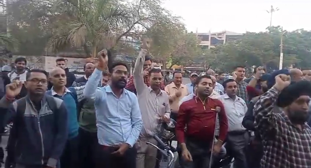 अंबाला : चन्द्रिका ( TSN)-बैकों में प्रयाप्त स्टाफ की भर्ती करने की मांग को लेकर बैंक कर्मचारियो ने यूको बैंक राय मार्केट अंबाला छावनी के सामने प्रदर्शन किया । आल इंडिया बैंक इंपलाईज एसोसिएशन के आवाह्न पर सभी कर्मचारियों में सरकार के खिलाफ जमकर नारेबाजी की ।