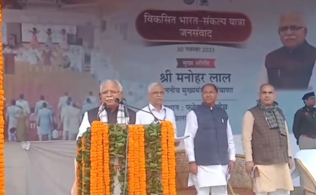 मुख्यमंत्री ने कहा कि विजय भारत संकल्प यात्रा आज से शुरू हो रही है जो ग्रामीण क्षेत्र से लेकर शहरी क्षेत्रो में अगले दो महीने तक चलेगी । उन्होंने कहा कि जातिगत को लेकर अगर हमारे मन में कोई बात आएगी तो हम सिर्फ और सिर्फ गरीबों के लिए ही काम करेंगे। मुख्यमंत्री ने कहा कि हरियाणा एक हरियाणवी एक है और मैं 2 लाख करोड़ 80 लाख लोगों को अपना परिवार मानता हूं। मुख्यमंत्री ने कहा कि हर कोई अपने परिवार के लिए काम करता है इस तरह मैं भी अपने परिवार के लिए काम कर रहा हूं। मुख्यमंत्री ने कहा कि पिछली सरकारों ने जितना काम किया हमने उनसे डबल किया और खर्च भी उनसे काम किया l उन्होंने कहा कि प्रदेश में हमने करप्शन को खत्म किया है l