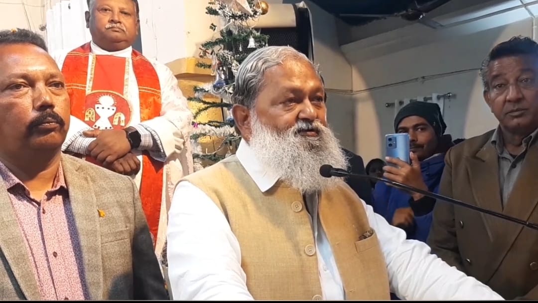 अंबाला(TSN): क्रिसमस के पर्व को आज हरियाणा में भी बड़ी धूम धाम से मनाया गया। इसी कड़ी में अंबाला के सभी चर्च में भी क्रिसमस बड़े धूम धाम से मनाया गया। अंबाला के सदर बाजार चर्च में क्रिसमस डे के अवसर पर हरियाणा के गृह एवं स्वास्थ्य मंत्री अनिल विज ने मुख्यातिथि के रूप में शिरकत की। यहां पहुंचने पर ईसाई धर्म के लोगों द्वारा गृह मंत्री का पुष्प गुच्छ देकर स्वागत किया गया। गृह मंत्री अनिल विज ने चर्च में बैठे लोगों को संबोधित किया।