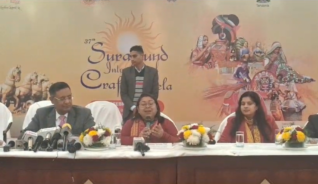 अंतर्राष्ट्रीय सूरजकुंड क्राफ्ट मेले को लेकर प्रेसवार्ता की गई । इस दौरान भारत सरकार के पर्यटन मंत्रालय की सचिव एवं सूरजकुण्ड मेला अथॉरिटी की चेयरपेर्सन वी. विद्यावती की अध्यक्षता में हरियाणा सरकार के पर्यटन विभाग के प्रधान सचिव एवं सूरजकुण्ड मेला अथॉरिटी के वाईस चेयरपर्सन एम.डी. सिन्हा और हरियाणा ट्यूरिज्म कॉर्पोरेशन के एमडी एवं सूरजकुण्ड मेला अथॉरिटी के चीफ़ ऐडमिनिस्ट्रेटर नीरज कुमार भी उपस्थित रहें और कल से आयोजित होने वाले 37 वे अंतर्राष्ट्रीय सूरजकुंड मेले को लेकर तमाम जानकारियां दी ।