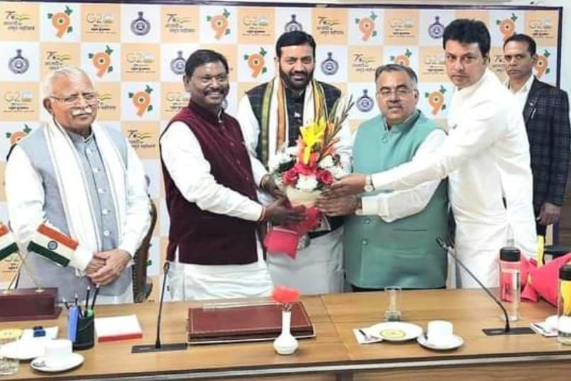 चंडीगढ़ : चन्द्रिका ( TSN)- भारतीय जनता पार्टी के राष्ट्रीय महासचिव तरुण चुग ने हारियाणा भाजपा विधायक दल का नेता और हरियाणा प्रदेश अध्यक्ष नायब सैनी को हरियाणा का मुख्यमंत्री बनने पर शुभकामनाएं दीं। इस अवसर पर उनके साथ कृषि मंत्री अर्जुन मुंडा, प्रदेश प्रभारी बिप्लब कुमार देब, पूर्व मुख्यमंत्री मनोहर लाल खट्टड़ आदि भी उपस्थित थे।