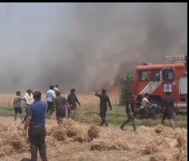 पलवल : चन्द्रिका ( TSN)– पलवल के गांव गढ़ी पट्टी और खिरवी में गेहूं की खड़ी फसल और भूसा में अचानक आ*ग लग गई । आग इतनी तेजी से लगी की गांव खिरवी में किसानों के खेतों में खड़ी 18 एकड़ गेहूं की फसल जलकर राख हो गई। वहीं गांव गढ़ी पट्टी में किसान ने एकत्रित किया पशु चारा भूसा जलकर राख हो गया। मौके पर पहुंची दमकल की गाड़ियों ने कड़ी मशक्कत के बाद आग पर काबू पाया । इस आ*ग से गांव खिरवी और गांव गढ़ी के किसानों का भारी नुकसान हुआ है।किसानों ने सरकार से मुआवजा देने की मांग की है,लेकिन आ*ग लगने के कारणों का पता नही चल सका है ।