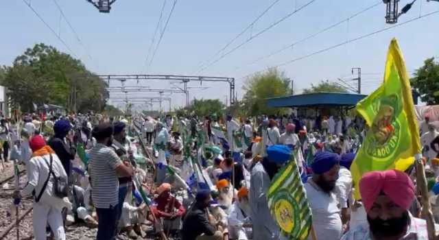 सैंकड़ों की संख्या में किसान शंभू बॉर्डर पर 13 फरवरी से लगे मोर्चे के बाद बुधवार को शंभू रेलवे स्टेशन पर रेलवे ट्रैक जाम करने पहुंच गए। इस दौरान पुलिस और किसानों के बीच धक्का मुक्की भी देखने को मिली। लेकिन किसानों के जोश के आगे पुलिस चंद मिनट ही टिक पाई। रेलवे ट्रैक पर अब किसानों ने पक्का मोर्चा लगा लिया है। किसानों का कहना है कि सरकार की वादा खिलाफी के बाद आज यह कड़ा कदम गिरफ्तार किसानों की रिहाई के लिए उठाया गया है और जब तक गिरफ्तार किसान रिहा नहीं होते तब तक ट्रैक जाम रहेगा।