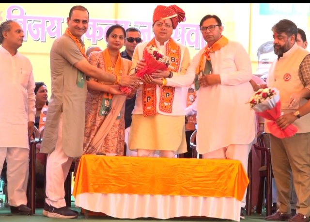 अम्बाला : चन्द्रिका ( TSN)- भाजपा ने अंबाला लोकसभा क्षेत्र में अब अपना प्रचार तेज़ कर दिया है। एक तरफ भारतीय जनता पार्टी की लोकसभा प्रत्याशी बंतो कटारिया निरंतर चुनावी रण में जनसभाएं कर लोगों से वोट-स्पोर्ट की अपील कर रही हैं। तो वही आज भाजपा के प्रचार को रफ्तार देने के लिए उत्तराखंड के मुख्यमंत्री पुष्कर सिंह धामी अंबाला शहर के जंडली में पहुंचे। जंडली में आयोजित की गई इस जनसभा में भारी तादाद में महिलाएं भी शामिल हुई। जिनमे अधिकतर महिलाए उत्तराखंडी वेशभूषा पहनकर जनसभा में पहुंची। इस दौरान धामी ने कांग्रेस को मुगलिया गैंग करार दिया।