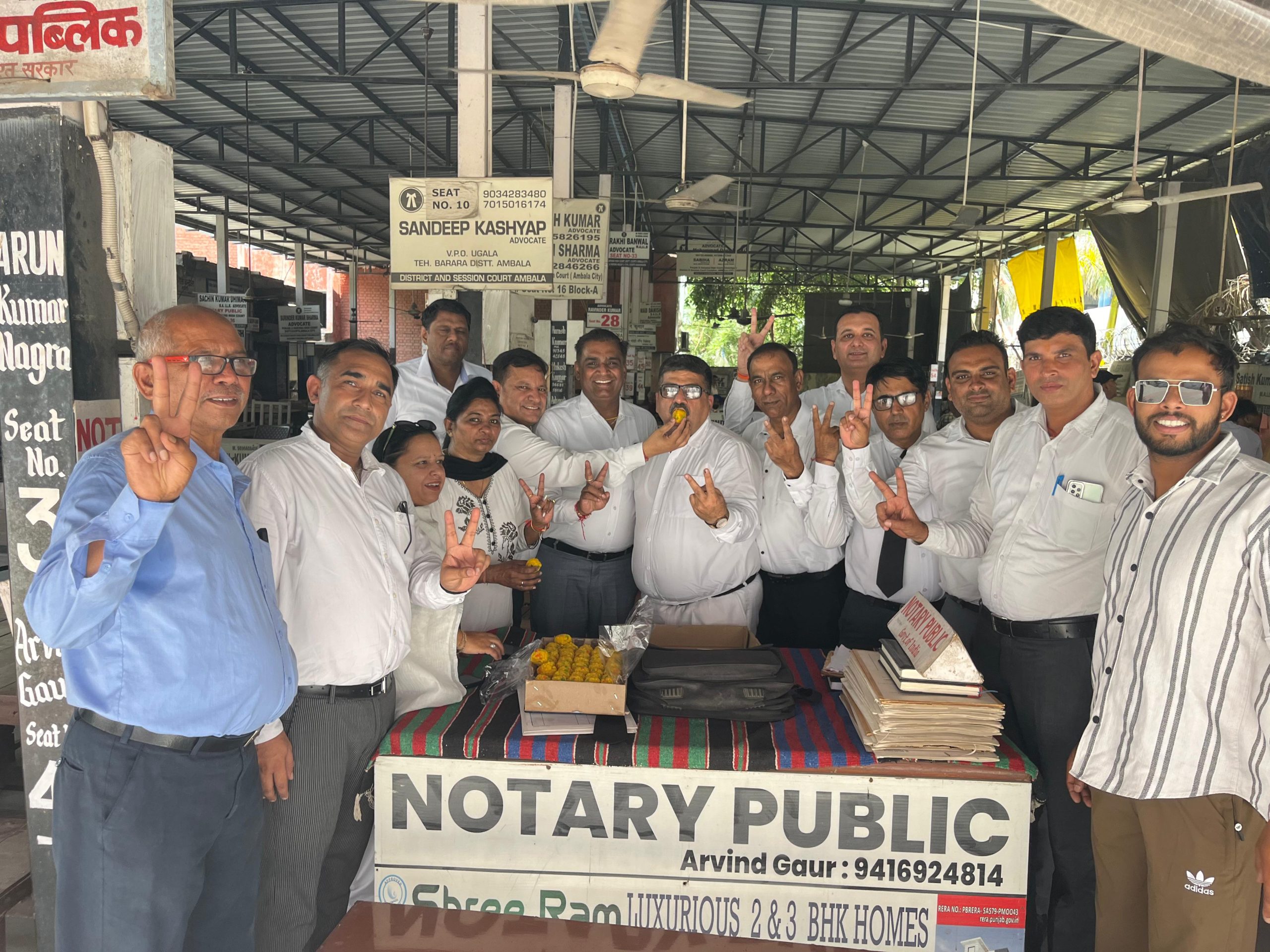 अम्बाला : पंखिल वर्मा ( TSN)- भारतीय जनता पार्टी कानूनी प्रकोष्ठ जिला अंबाला के अध्यक्ष राज महक राणा की अध्यक्षता में आज जिला कचहरी अंबाला शहर में केंद्र में लगातार तीसरी बार नरेंद्र मोदी की सरकार बनने का जश्न मनाया गया और लड्डू बांटे गए.