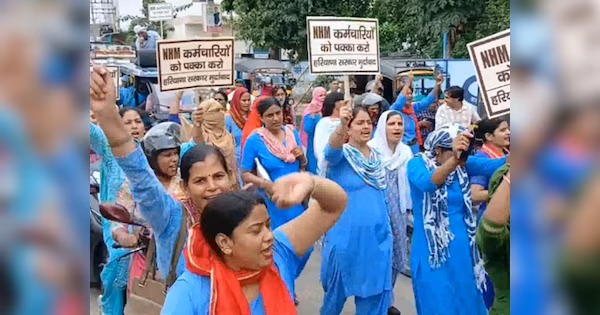 बता दें कि आज के आंदोलन के दौरान महिलाओं ने हाथों पर मेहंदी लगाई जिसमें लिखा था कि एनएचएम कर्मचारियों को पक्का करो। इसी के साथ गालों पर भी लिखवाया किया एनएचएम कर्मचारियों को पक्का करो। इसी एक मांग को लेकर सरकार के खिलाफ जमकर नारेबाजी की गई। स्वास्थ्य कर्मचारी संघ के प्रदेश प्रदेश विपिन कुमार ने बताया कि आज हड़ताल का 12वां दिन हैं। आज से चार दिन हड़ताल को आगे बढ़ा दिया गया है। चार दिनों तक कर्मचारी कर्मिक अनशन करेंगे अगर फिर भी सरकार नहीं चेती तो आमरण अनशन शुरू किया जाएगा। प्रदर्शनकारियों का कहना कि उनकी एक सूत्रीय मांग है कि उन्हें नियमित किया जाए। जब तक उनकी मांग पूरी नहीं होती आंदोलन जारी रहेगा। उन्होंने कहा कि कल कैबिनेट मीटिंग में भी उनकी मांगों को लेकर कुछ ज्यादा चर्चा नहीं हुई है सरकार और अधिकारी उनकी मांगों को पूरा करने का प्रयास नहीं कर रहे है जिसके चलते अब कर्मचारियों में सरकार के प्रति रोष और भी बढ़ गया है। उन्होंने कहा कि अगर सरकार ने जल्द ही उनकी मांगों को पूरा नहीं किया तो सरकार को इसके भयंकर परिणाम भुगतने पड़ेगे।