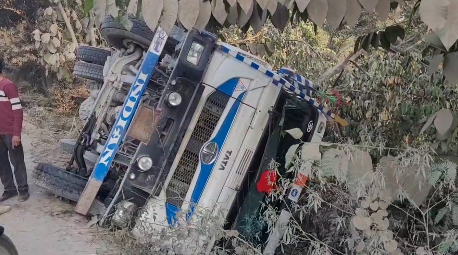 यमुनानगर, 25 नवंबर —यमुनानगर के छछरौली में 16 टायर ट्रक बजरी से भरा उस वक्त पलट गया, जब दूसरे ट्रक को बचाते वक्त यह हादसा हुआ। गनीमत रही की ट्रक में अकेला ड्राइवर ही था उसको खरोच तक नहीं आई, लेकिन ट्रक पूरी तरह से चकनाचूर हो गया।