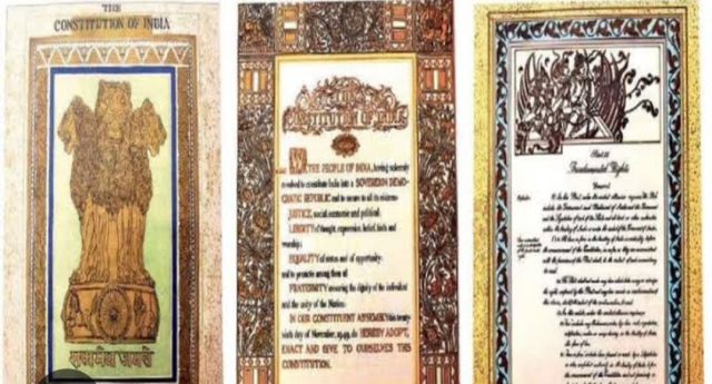 अम्बाला, 26 नवंबर – 26 नवंबर 1949 को भारतीय संविधान बनकर तैयार हुआ था शुरुआत में यह संविधान हाथों से लिखा गया था. जिसकी एक कॉपी आज भी अंबाला छावनी में मौजूद है.हर साल इस दिन सभी बच्चों को यह कॉपी दिखाई जाती है और भारतीय संविधान के बारे में जानकारी दी जाती है. कैलीग्राफी में लिखे इस संविधान में हर नए अध्याय पर चित्र लगाए गए हैं जो खास कोलकाता से बनवाए गए थे।