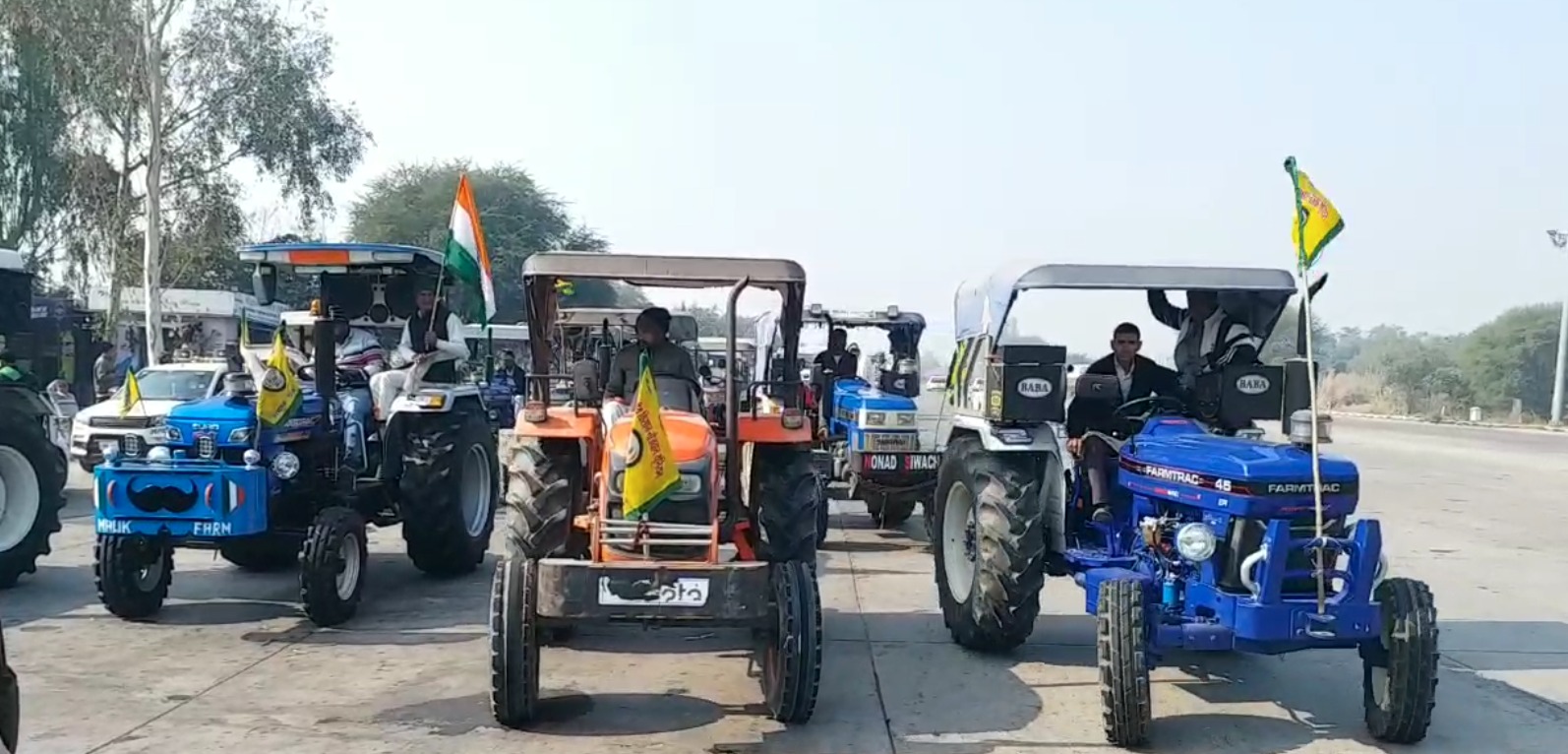 हिसार,16 दिसम्बर ––हरियाणा में ट्रैकटरो के प्रदर्शन के आहवान पर आज हिसार मैय्यड रामायण टोल प्लाजा किसानो ने ट्रेकट्ररो पर प्रदर्शन किया। सभी किसान आज किसान नेता दशरत के नेतृत्व में टोल प्लाजा पर एक एकत्रित हुए। सभी किसान हिसार के अलग अलग गावो से ट्रेकटर लेकर पहुचे थे। टोल प्लाजा से सभी किसान ट्रेकटरो पर किसानी झंडा लगाकर रवाना हुए और किसानो ने हांसी के एसडीएम को ज्ञापन सौपा।