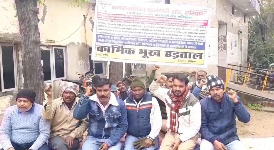 अम्बाला, 9 जनवरी –अपनी मांगों को लेकर एक बार फिर से सफाई कर्मचारी दो दिन की भूख हड़ताल पर बैठ गए ! नगर पालिका कर्मचारी संघ हरियाणा के उप प्रधान सेवा राम ने सरकार पर वादा खिलाफी के आरोप लगाए ! इस मौके पर प्रदेश भर में नगर निगम में 21 कर्मचारी , नगर परिषद में 11 कर्मचारी और नगर पालिका में 5 कर्मचारी दो दिन की भूख हड़ताल पर बैठ गए ! इस मौक पर सफाई कर्मचारियों ने सरकार के खिलाफ जमकर नारेबाजी भी की !